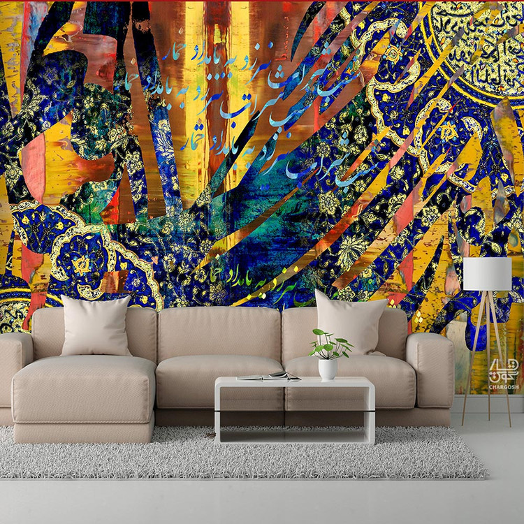 کاغذ دیواری پوستری نقاشیخط سنتی و ایرانی مدرن با شعر جهان را غرق در افسانه ای کن از گالری چارگوش مدل 7325