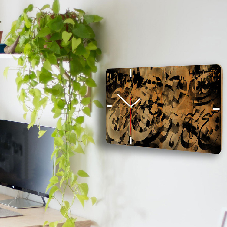 ساعت دیواری چوبی گالری چارگوش مدل RC18 مستطیل