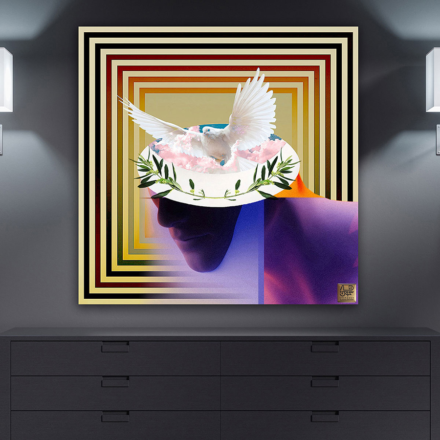تابلو نقاشی کبوتر صلح اندیشه؛ رهایی از تو در تو های ذهن انسان اثر گالری چارگوش مدل 2227