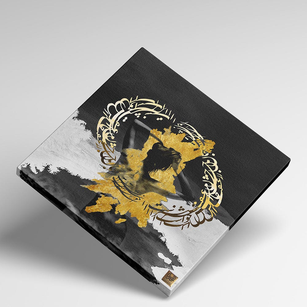 تکنیک: Mixed Media Digital و ورقطلای بافتدار | متریال: بوم کانواس پنبهای نانو | چاپ: جیکلی ۱۲ رنگ متالیک | خوشنویسی: وکتور برداری با افکت برجسته | طراح: احمد قلیزاده